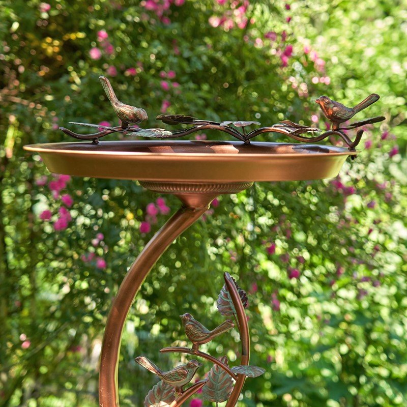 You will receive this premium 32″ Tall Shallow Copper-Finished Iron Birdbath with Branch Stand from Zaer LTD International.