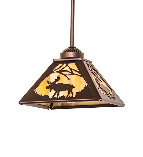 You will receive this premium 8″ Square Moose at Dawn Mini Pendant from Meyda Lighting.