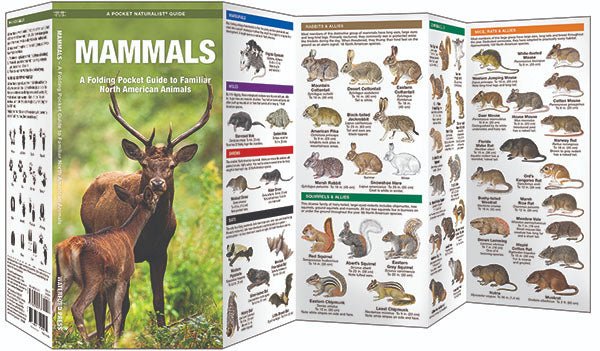 Mammals is the perfect pocket-sized, folding guide for the nature enthusiast. This beautifully illustrated guide highlights over 100 common North American species from shrews and bats to bears and whales. Also includes information on common animal tracks. Laminated for durability, this lightweight, pocket-sized folding guide is an excellent source of portable information and ideal for field use by naturalists of all ages. Made in the USA.