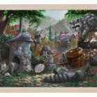 Mischievous mountain mayhem! This captivating 11″ x 14″ art print from Wild Wings brings the playful antics of raccoons to life with stunning detail and vibrant color.