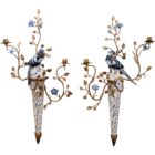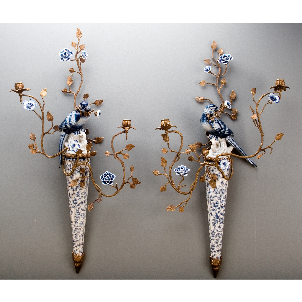 Pair of Porcelain Blue and White Wall Hanging Candle Sticks 30″