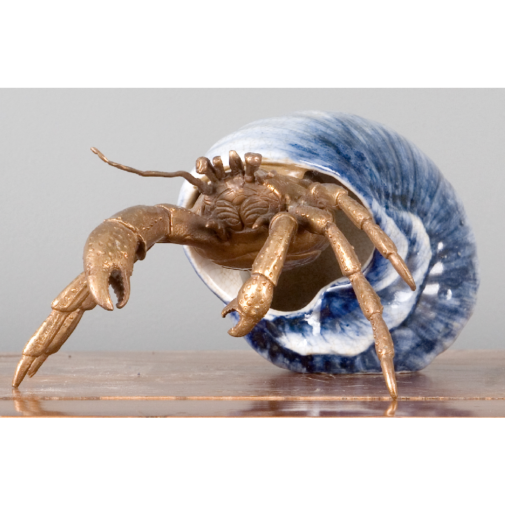 Porcelain Bronze Crab Figurine in Shell Blue with Bronze Ormolu