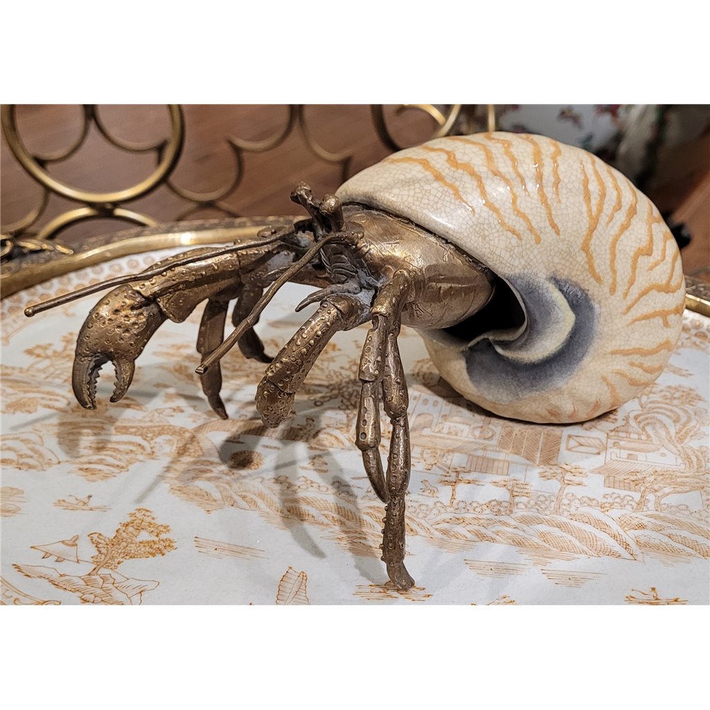 Bring a touch of coastal elegance to any space with this exquisite Porcelain Hermit Crab Figurine in Coral with Bronze Ormolu.