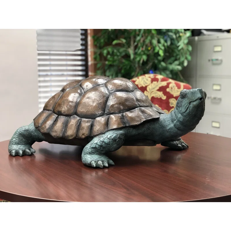 Standing at a height of 13 inches, this bronze turtle fountain is a versatile and compact size, suitable for tabletops, garden nooks, or as a decorative piece in a water feature. The enduring appeal of the bronze material ensures its durability, even when placed in outdoor environments. Whether placed in a home, office, or garden, the turtle fountain becomes a captivating focal point that invites viewers to appreciate the beauty of nature and the calming effects of flowing water. It serves as a reminder of the interconnectedness of humans and the natural world, evoking a sense of peace and harmony wherever it is displayed.