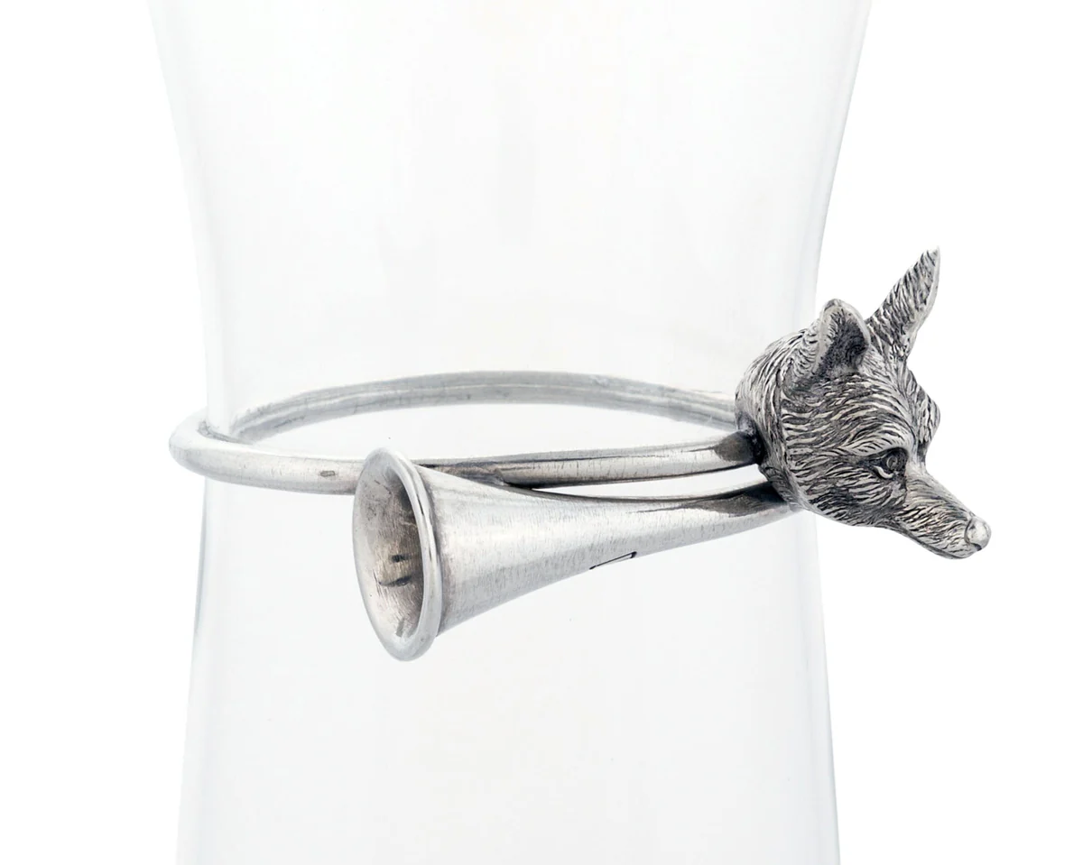 Use this sleek Hunt Horn wine carafe from Vagabond House to serve wine to your dinner guests. The 10-inch-tall glass vessel is designed in an open carafe style with a lip for easy pouring and a wide mouth for proper aeration, achieving the full flavor of your favorite fine wines. A popular beverage server for animal enthusiasts, this wine carafe has a collar crafted from pure pewter featuring the face of a fox and accented with nature-inspired branch flourishes. This woodland-themed carafe holds up to 28 ounces of liquid, or the contents of a standard bottle of wine. Enjoy serving other beverages from this elegant pitcher too. Chilled water and colorful juices poured from this Hunt Horn wine carafe make a delightful addition to your table setting or buffet spread.