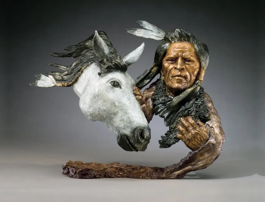 - In many of his Native-American pieces, he emphasizes expressive features like faces and hands to convey emotion, thought, dignity, or cultural resonance.